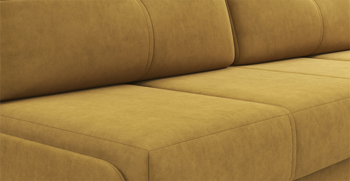 Особое внимание стоит уделить отсутствию подлокотников. Это не просто дизайнерское решение, а продуманный шаг к экономии пространства. Диван Данте идеально впишется даже в небольшие комнаты, не загромождая их и визуально расширяя пространство.