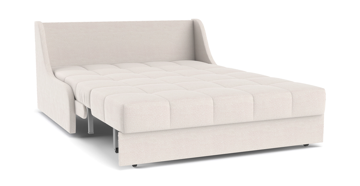 Идеальное решение для малогабаритных квартир – диван Дели с механизмом трансформации Аккордеон. В этой модели нет ничего лишнего. Заменяющие подлокотники фальшпанели экономят место, а высокая задняя спинка дивана в разложенном виде становится изголовьем кровати. Ровное и просторное спальное место без стыков обеспечивает комфортный сон.