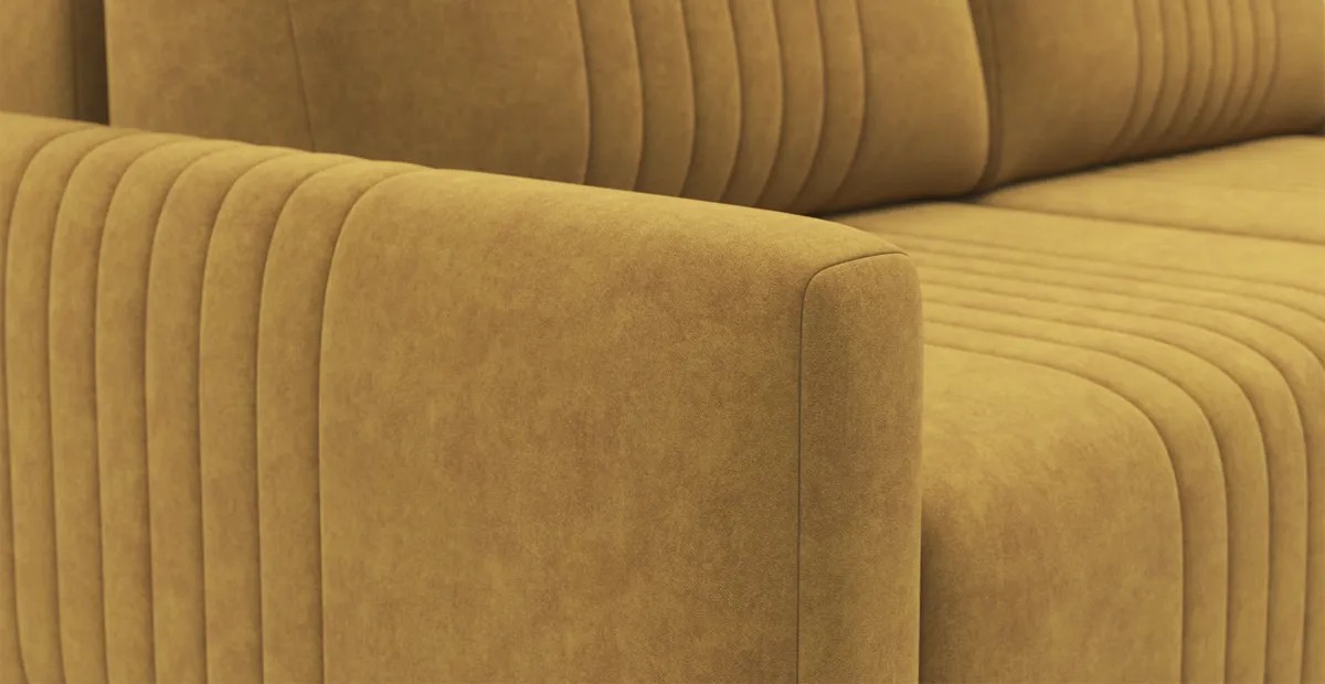 Спинка модели выполнена в основной обивочной ткани, что позволит вписать его в пространство-студию, легко разделив интерьер на функциональные зоны.