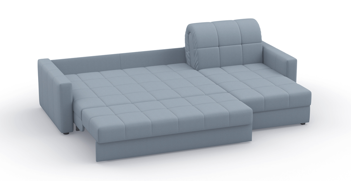 Особенностью диванов с механизмом Аккордеон является просторное и ровное спальное место, несмотря на компактные размеры дивана в собранном положении. А также возможность встроить вместительный бельевой ящик. В данном механизме исключается возникновение скрипа благодаря сиденью дивана, которое выполнено на металлической сетке. Каждая из трех секций спального места имеет по 4 твердые точки опоры, которые исключают вероятность скрипа. Уникальная конструкция позволяет фиксировать сиденье почти в вертикальном положении, что обеспечивает самый комфортный доступ к бельевому ящику.