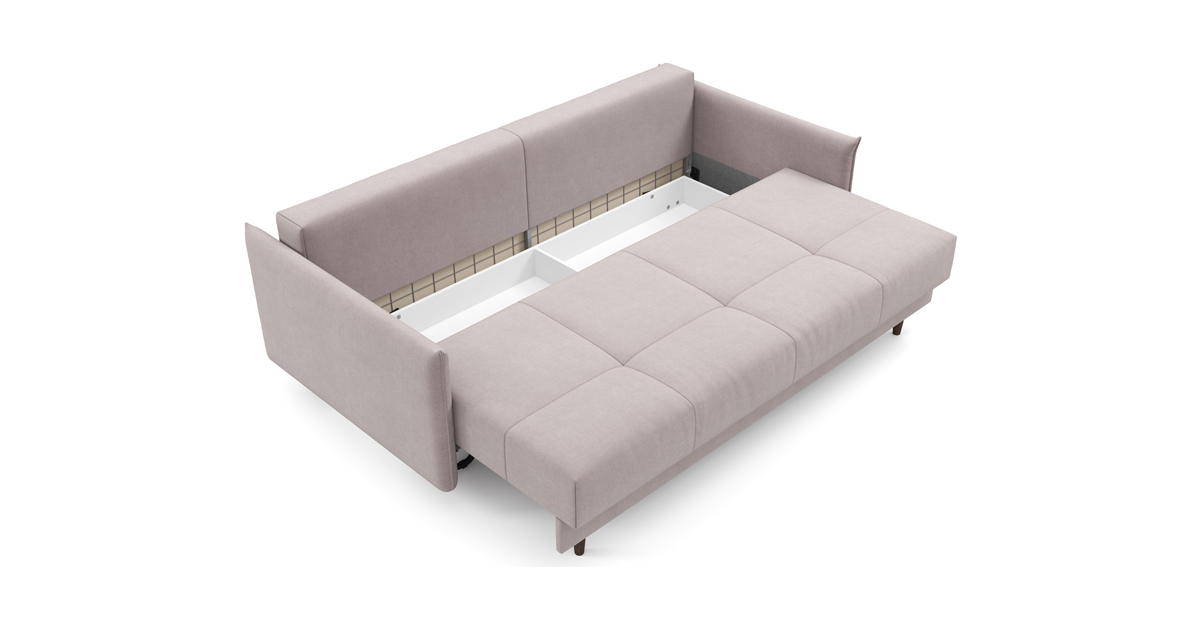 Несмотря на строгие формы, диван Каприо NEXT – это воплощение элегантности и уюта. Компактный и лаконичный, он идеально подойдет для небольшого помещения или для минималистичного интерьера, добавив ему нотки современного стиля. Узкие мягкие подлокотники – актуальный мебельный тренд. Английский шов на приспинных подушках и подлокотниках придаёт дивану оригинальность и ненавязчиво подчеркивает объём и мягкость наполнителя. Декоративная стёжка основной части сиденья и приспиных подушек препятствует растяжению ткани и сохраняет первоначальный красивый внешний вид дивана. Под сидением расположен вместительный бельевой ящик для хранения постельных принадлежностей. Благодаря высоким опорам с лёгкостью можно провести уборку самостоятельно или с помощью робота-пылесоса. Механизм трансформации дивана «Тик-Так» – надежный и долговечный – разработан для каждодневного сна. Материалы, из которых изготовлен Каприо, обеспечивают максимальную безопасность и комфорт эксплуатации в течение всего срока службы дивана. Металлические рамы, используемые в качестве элементов каркаса дивана, имеют высокую прочность, они не деформируются при больших нагрузках, не боятся перепадов температур и влажности. Матрас высотой 17 см с ортопедическим эффектом изготовлен из высокоэкологичных и гипоаллергенных материалов – пенополиуретана самого высокого качества. В основе матраса – независимый пружинный блок «Smartika».