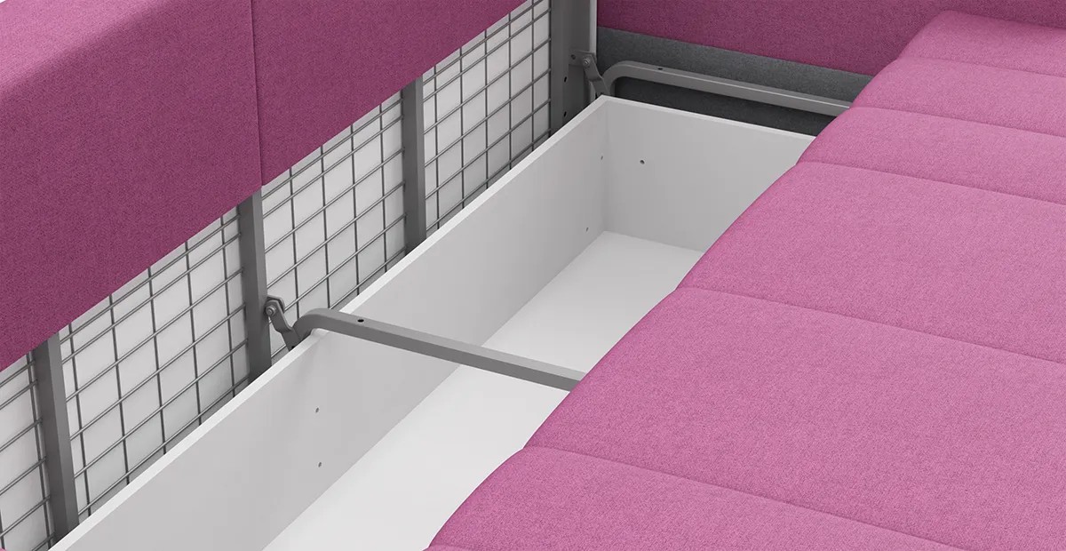 В дополнение к остальным положительным качествам механизма Еврокнижка платформа каркаса в исполнении NEXT выполнена полностью из металла и является базой для построения дивана. Основание каркаса оборудовано байонетами для надежного и быстрого монтажа комплектующих дивана в готовое изделие при окончательной сборке у покупателя.