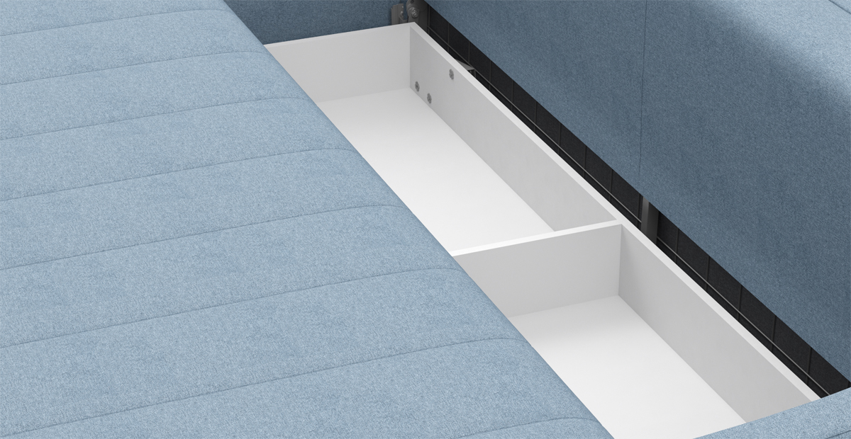 Важный практичный элемент – вместительный и прочный ящик для белья с дополнительными опорами.