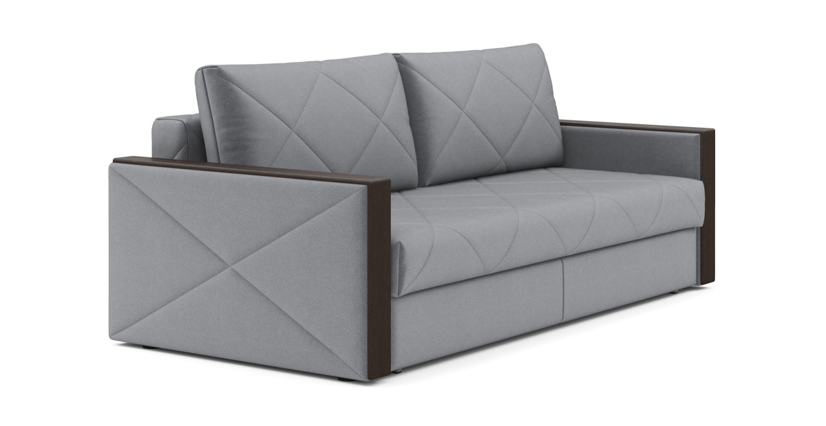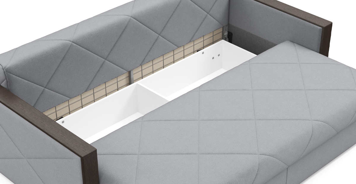 Стильный диван Мюнхен на металлической платформе NEXT — сочетание элегантности и функциональности. Благодаря современным технологиям, диван можно разложить одной рукой, а механизм трансформации «тик-так» не портит покрытие пола. Стежка на сидении и спинке не позволит образовываться складкам на обивке, а чехлы на подушках можно снять, чтобы постирать. Во вместительном бельевом ящике под сидением можно хранить спальные принадлежности. Кроме этого, любители пить на диване чай или кофе по достоинству оценят широкие подлокотники с деревянными накладками.