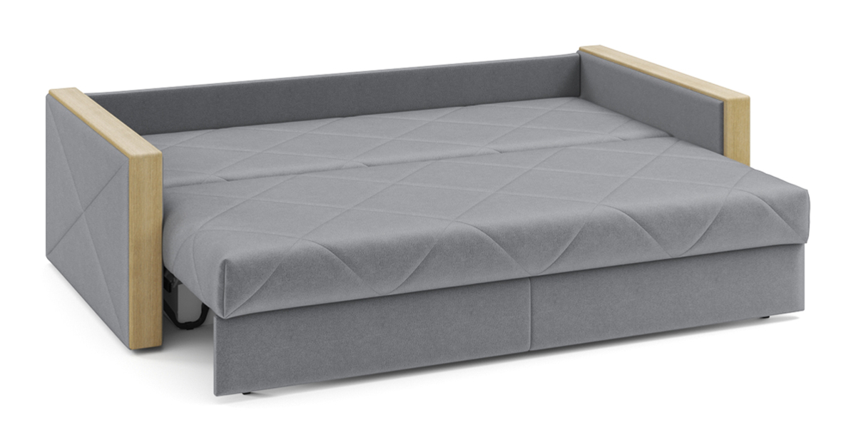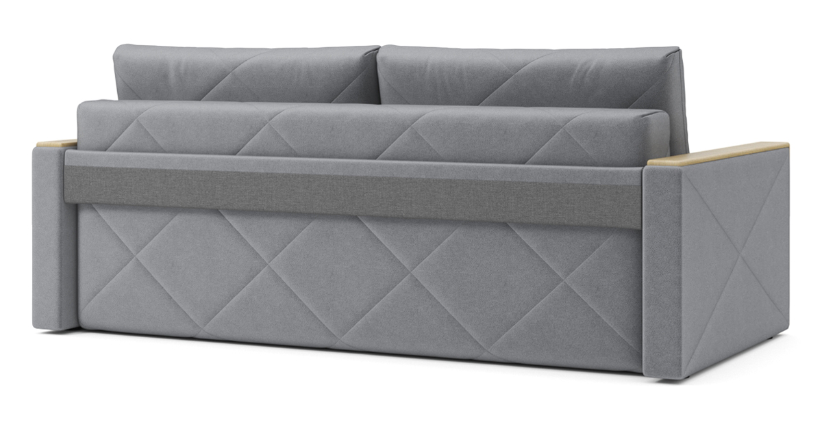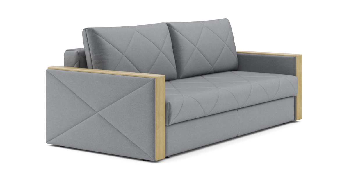 Стильный диван Мюнхен на металлической платформе NEXT — сочетание элегантности и функциональности. Благодаря современным технологиям, диван можно разложить одной рукой, а механизм трансформации «тик-так» не портит покрытие пола. Стежка на сидении и спинке не позволит образовываться складкам на обивке, а чехлы на подушках можно снять, чтобы постирать. Во вместительном бельевом ящике под сидением можно хранить спальные принадлежности. Кроме этого, любители пить на диване чай или кофе по достоинству оценят широкие подлокотники с деревянными накладками.