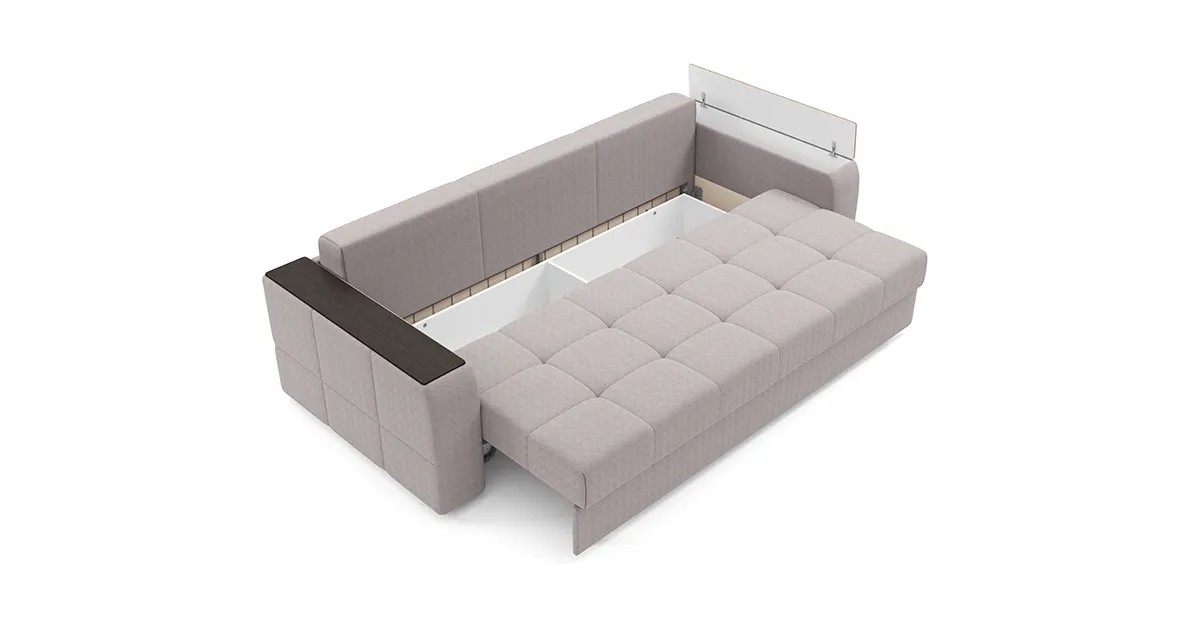 диван очень понравился, цвет нейтральный ни теплый ни холодный, подлокотники с местом для хранения вещей, довольно вместительные:f09f9881:мы все мягкие игрушки спрятали, и много всего! каркас металлический, легкий в сборке, при желании можно даже поменять цвет, придти в салон и заказать новую обивку! доставка быстрая, заказали 31.12 и 09.01 или 10.01 диван был уже дома, если бы не праздники, то дня за 3 доставили!к покупке рекомендую