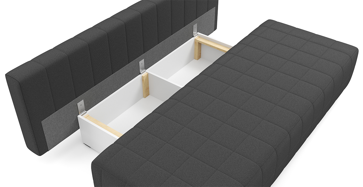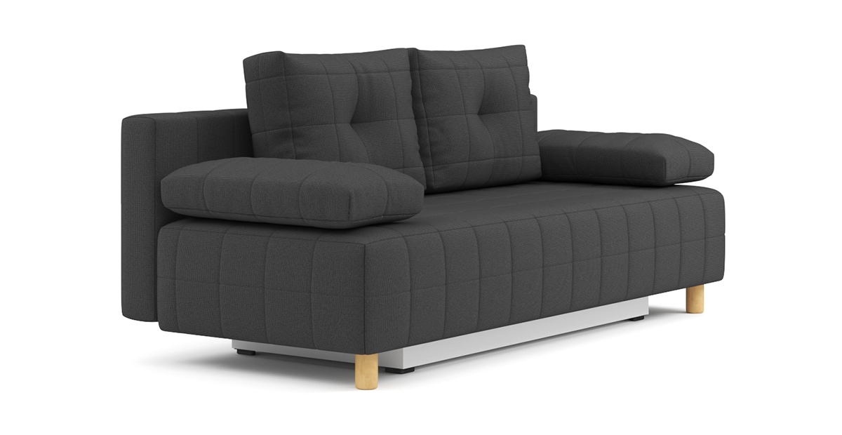 Компактный диван Порту для небольшого помещения – просто находка! Простые формы, приподнятые ножками над полом, скрывают в себе функционал полноценного дивана. Механизм трансформации легко превращает его в удобную кровать для регулярного сна. Ящики для хранения идеально подходят для приспинных подушек и постельных принадлежностей. Добавьте к Порту декоративных подушек – и ваш интерьер заиграет новыми красками.