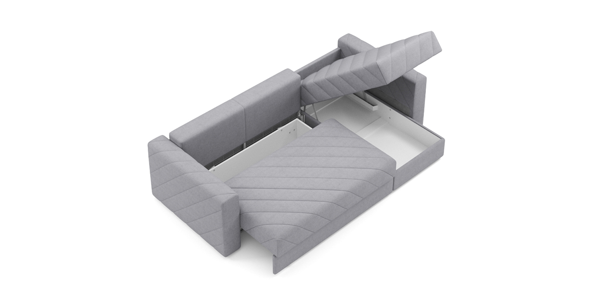 Вместительный бельевой ящик, расположенный под сидением, станет незаменимым помощником в организации пространства. Здесь вы сможете удобно хранить постельное белье, одеяла и другие необходимые вещи, поддерживая порядок в вашей гостиной.