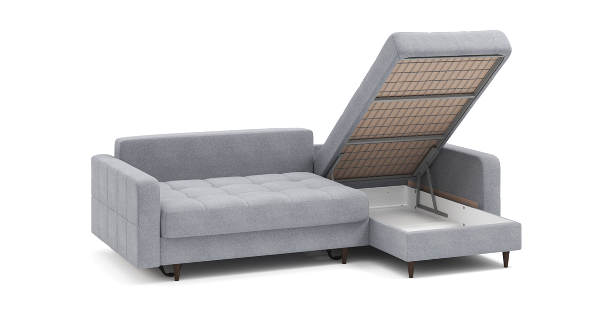 Диван Стокгольм – воплощение скандинавского стиля и привычной нам функциональности. Декоративные опоры визуально облегчают конструкцию и приподнимают ее над полом. При этом внутри дивана есть секция для хранения постельных принадлежностей. Модель оснащена механизмом трансформации, позволяющим разложить диван в просторное спальное место.