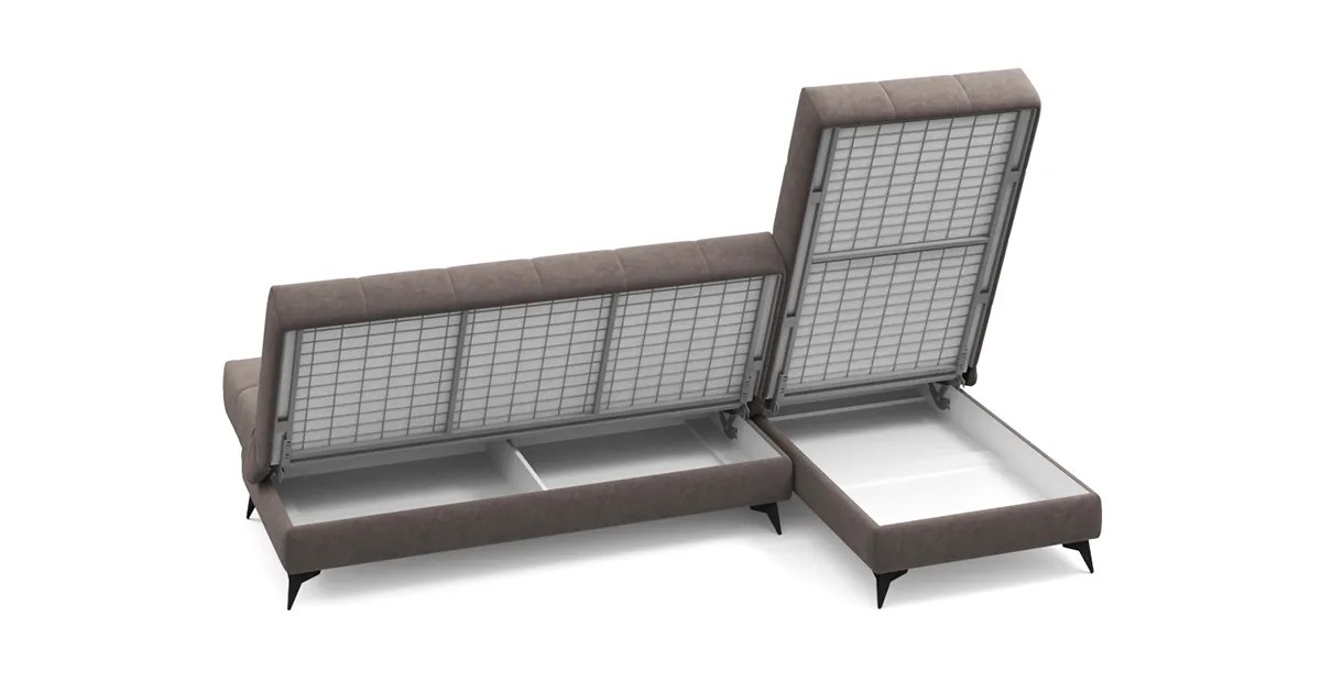 Несмотря на компактные размеры дивана Виго, под его основанием прячется полноценный бельевой ящик. Металлическая платформа дивана надёжна и очень долговечна благодаря легирующим добавкам и дополнительным рёбрам жёсткости в местах максимальной нагрузки. Высокопрочная сварная конструкция под мягким настилом позволяет достигнуть оптимального соотношения упругости и комфорта.