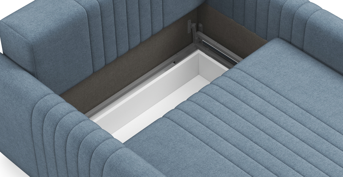 Спинка модели выполнена в основной обивочной ткани, что позволит вписать его в пространство-студию, легко разделив интерьер на функциональные зоны.
