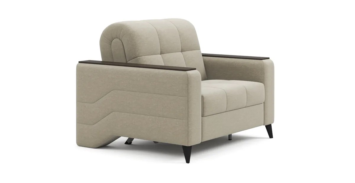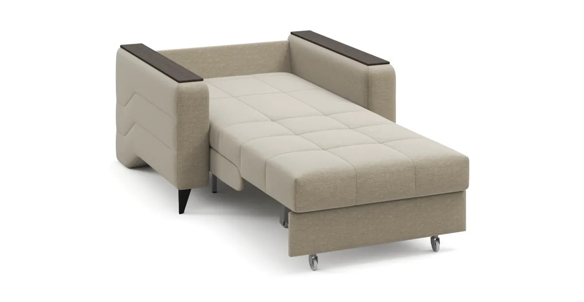 Кресло-кровать Нойс объединило в себе самые лучшие качества! Высокие опоры и плавная геометрия стёжки на подлокотниках придадут интерьеру легкость и динамичность. Этот стильное и уютное кресло-кровать одинаково хорошо для оформления и современного, и классического дизайна. Вместительные ниши в подлокотниках – полноценная замена ящика для белья в его традиционном понимании. Отсутствие ящика под основанием сохранит привлекательный внешний вид и позволит без проблем осуществлять влажную или сухую уборку, в том числе роботом-пылесосом. Надёжный механизм аккордеон превращает Нойс в удобную кровать с ровным спальным местом и спинкой, защищающей стену от касания во время сна. Трёхсекционная конструкция основания мягкого настила с адаптационным распределением нагрузки и независимый пружинный блок – залог действительно качественного отдыха. Каучуковое покрытие колёсиков обеспечивает бережную и бесшумную трансформацию. Раскладывать кресло-кровать можно хоть каждый день! Металлический каркас из конструкционной стали с высокими эксплуатационными свойствами и системой «антискрип» не подвержен коррозии и устойчив к перепадам температуры и влажности.