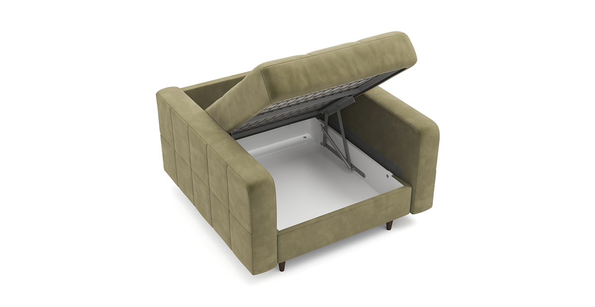 Кресло Стокгольм — воплощение скандинавского стиля и привычной для этой коллекции функциональности. Декоративные опоры визуально облегчают конструкцию, приподнимая её над полом на достаточную высоту для уборки роботом-пылесосом. Под сидением присутствует секция для хранения.