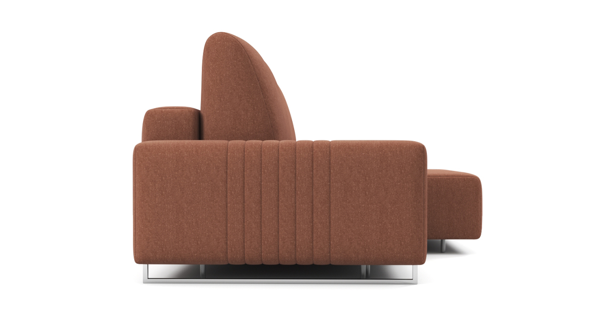 Спинка модели выполнена в основной обивочной ткани, что позволит вписать его в пространство-студию, легко разделив интерьер на функциональные зоны.